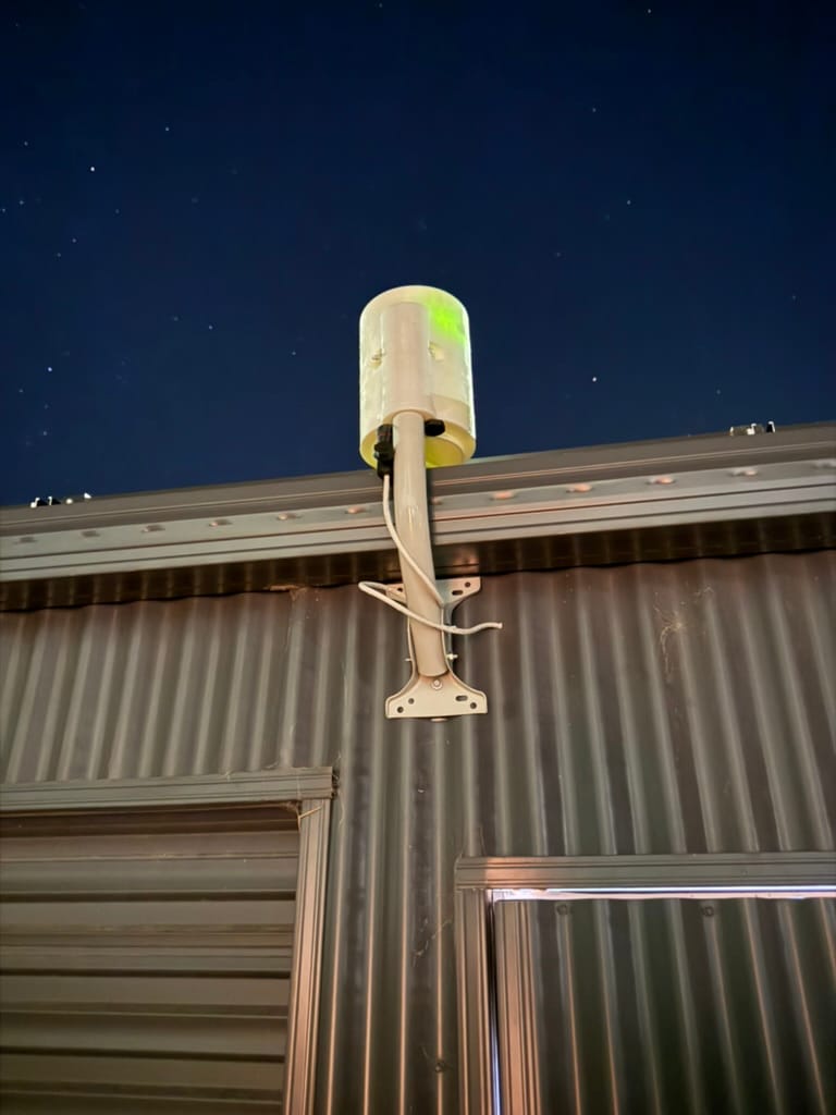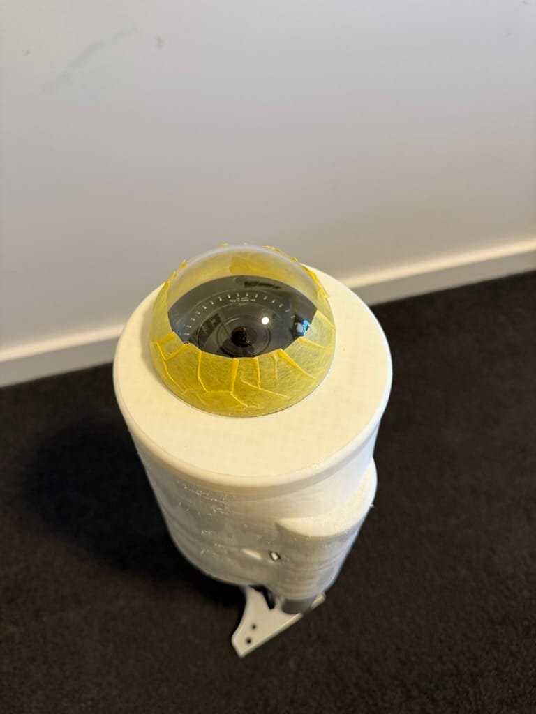 Here is the build mostly done. I printed the enclosure, its not super awesome, I had some issues with such a big print, printing in ASA (it shrinks, and so de-laminates sometimes in the upper layers, but not significantly enough to bin the print). I filled the gaps with silicon and I hope I won't regret that. I'm using a Ubiquiti Universal mount arm, to mount it on my garage.